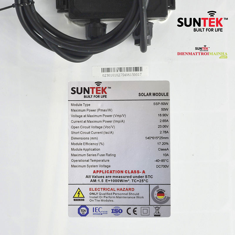 Giới thiệu Tấm Pin Năng Lượng Mặt Trời SUNTEK SSP-50W – Điện mặt trời mái nhà